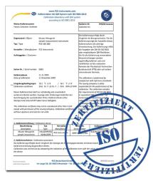 Certificat d'étalonnage ISO pour se conformer par exemple à votre DIN ISO 9000 ou pour valider la précision de votre magnétomètre. Pour cela, nous confions l'appareil de mesure au laboratoire d'étalonnage. Vos informations client, les valeurs mesurées et le numéro de série de l'appareil sont mentionnées sur ce certificat d'étalonnage ISO.