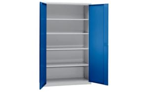 Portes bleues (RAL5010) et caisson gris (RAL7035). Dim° ext.: L.1200 x l.500 x H.2000 mm.
