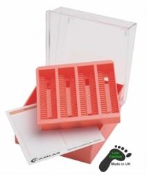 Portoir en polystyrène haute densité, avec couvercle, pour rangement de lames (76 x 26 mm)