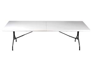 Table pliante, Plateau en PE blanc avec chassis en acier - Dim°: L.2440 x P.750 x H.740 mm