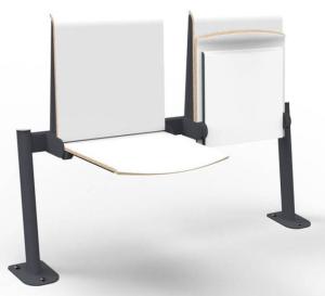 Chaise rabattable sur poutre en tôle pliée. Fixation au sol. Assise L. 410 mm