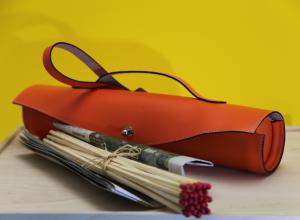 Trousse à allumettes longues, en cuir naturel cousu main - Teinte orange