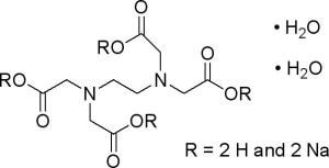 Synonym: Disodium ethylenediaminetetraacetate dihydrate, EDTA disodium salt, EDTA-Na2, Edathamil, Edetate disodium salt dihydrate, Ethylenediaminetetraacetic acid disodium salt dihydrate, Sequestrene Na2.