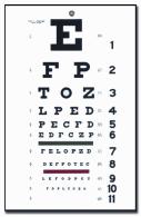 Echelle d'acuité visuelle - Test d'acuité visuelle de "Snellen" (à 6 mètres)