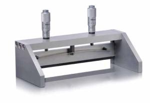 L’applicateur est constitué de deux plaques d’assise et d’un pont qui est relié à l’arête supérieure de la lame de tirage au moyen de deux micromètres munis de ressorts à lames: l’ajustement de la hauteur de fente est ainsi rendu possible. La lame de tirage et les plaques d’appui sont en aluminium de 6,4 mm. Les plaques d’appui empêchent le produit échantillon de s’écouler sur les côtés pendant le processus d’étalement.