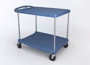Chariot à plateaux en PE bleu et armature en acier chromé - Dim°. L.873 x P.585 x H.901 mm