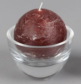 Forme bol évasé à base lestée. Dim°.: Ø.100 x H.70 mm. Bougie à commander séparément.
