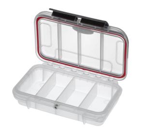 Dim°ext/int: L.175/157 x P.115/82 x H.47/41 mm. Dotée de quatre compartiments