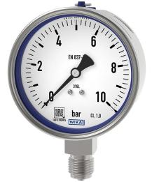 Excellente stabilité du cycle de charge et résistance aux chocsAvec boîtier rempli de liquide (type 233,50) pour applications avec charges de pression dynamiques élevées et vibrationsEntièrement fabriqué en acier inoxÉchelles de mesure de 0 ... 0,6 à 0 … 1 600 bar [0 … 10 à 0 … 20 000 psi]Le QR code sur le cadran permet d'accéder à des informations spécifiques à l'instrument Description