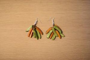 Boucles oreilles "flamme" - Réalisation artisanale en ivoire végétal pistache/orange