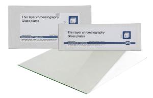 Plaque en verre, avec gel de silice silanisée Ep.0,25 mm (”silice silanisée“ = silice 60 avec modification diméthyle). Machery-Nagel®.